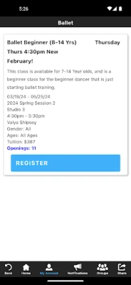 The Contemporary Ballet Dallas Kids app allows you to manage your account with ease, register for classes, auditions, and special events. You'll also receive important notifications about class changes, closings, registration openings, special announcements, and upcoming events.